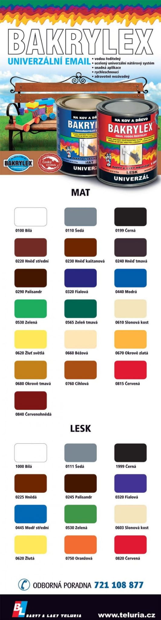 Bakrylex emalia spełnia wymagania przepisów dotyczących zastosowania farb do barwienia zabawek dla dzieci do 3 roku życia. Nie emituje szkodliwych związków.