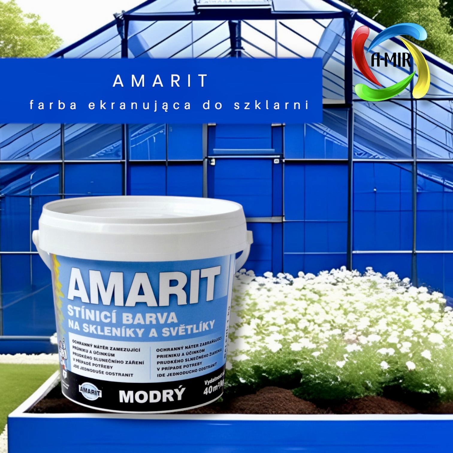 AMARIT NIEBIESKI – farba ekranująca do szklarni