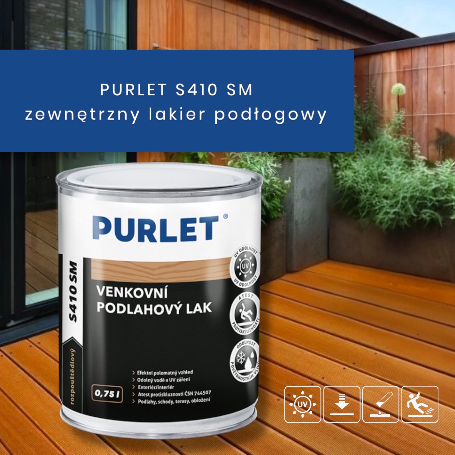 PURLET S 410 SM matowy bezbarwny lakier podłogowy do drewna, sklejki zewnętrzny i wewnętrzny